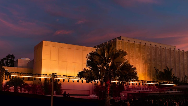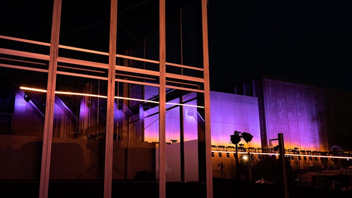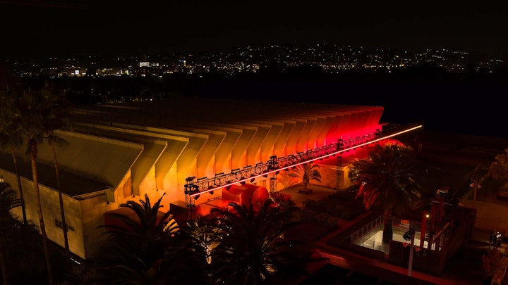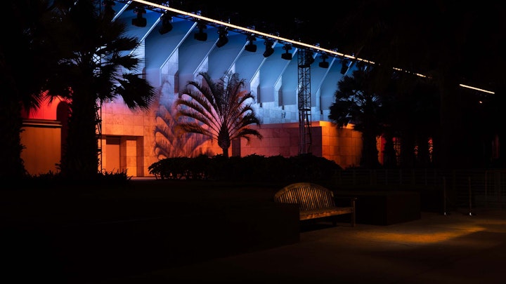 The LACMA campus is vast, and The Horizon had to be in proportion. The installation was comprised of two 24ft tall and 300ft long sections. The installation held 140 LED Fixtures and 80 Moving Head Arc lamps.